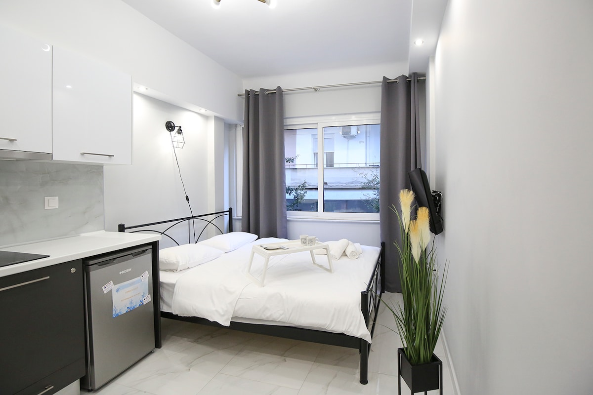 -Prime location on side street of Aristotelous Square -Few steps from the waterfront -Easy walking to all venues/sites -Modern clean design with ample natural lighting. Huge window -Easy keyless access -Room darkening blinds -Inverter A/C Unit for heat/cold -High quality mattress and pillows -Hotel style bathroom -Professionally cleaned for your stay -Possible outside noise from nearby bars -Perfect for a couple, lone traveller, executives or friends