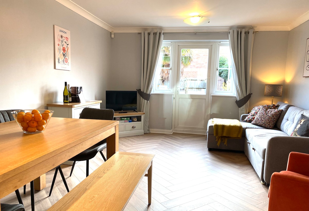Lovely, spacious, and modern 2BR house: • up to 6 guests • in a quiet residential area •near ExCeL, Royal Victoria Bridge, City Airport, Canary Wharf, and Docklands Enjoy boutique-style comfort, marble-style bathroom, fully equipped kitchen, king-size sofa bed, and a private garden. — All you need in one place — Just 20 minutes by DLR to central London. Secure parking available, please ask for details when booking.