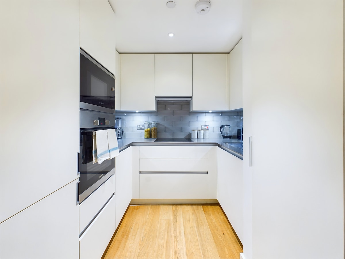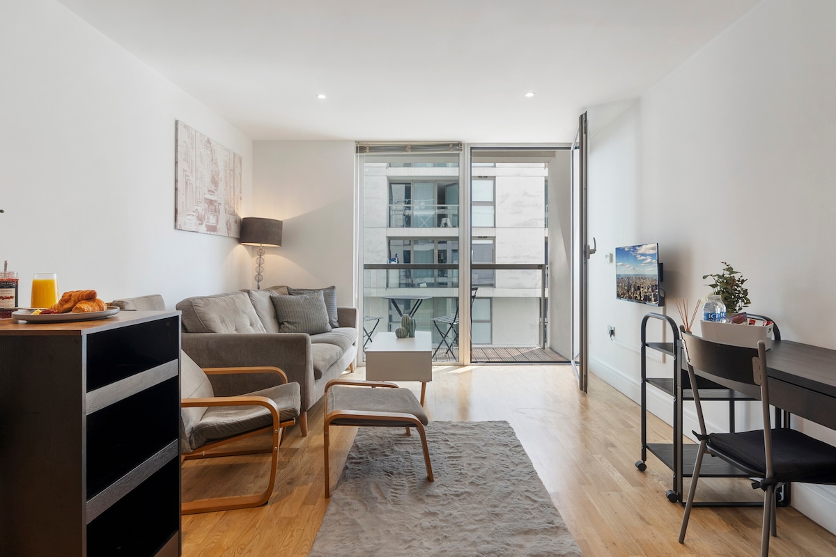 时尚的Canary Wharf公寓和阳台,距离地铁站仅1分钟路程