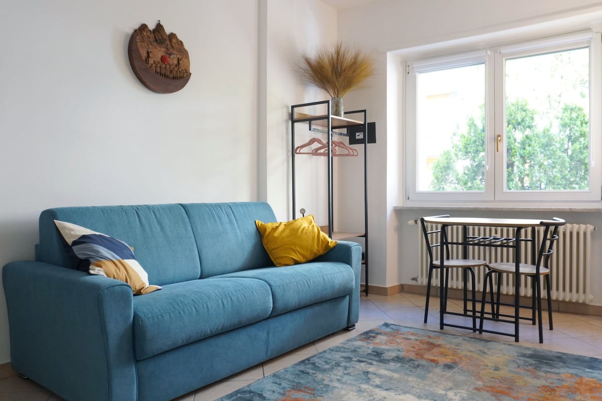 Appartamento accogliente composto da una camera matrimoniale spaziosa, da un bagno con vasca/doccia, da un’ampia cucina e da un soggiorno con divano letto (materasso molto confortevole) L'appartamento puó accogliere sino a 4 persone . Dotato di riscaldamento autonomo lavastoviglie forno elettrico microonde bollitore tostapane macchina per il caffé stoviglie TV Netflix Disney+ e Wi-Fi gratuito. In dotazione verrà fornita la biancheria da letto, da bagno, da cucina, asciuga capelli