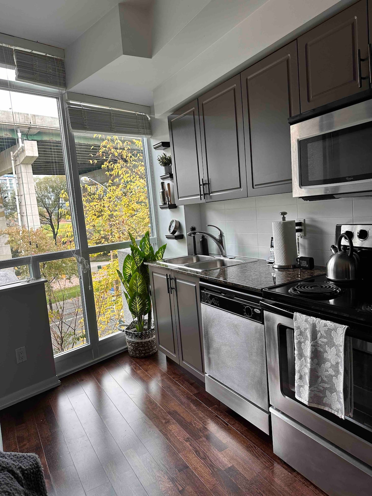 Enjoy a memorable stay at this unique condo located in the heart of Liberty Village. Just steps from downtown Toronto, BMO Stadium, & Budweiser Stage, you’re never far from where you need to go. With beautiful unobstructed park and city views, you can take it all in while you enjoy your little slice of paradise. The condo is designed with warmth, character, and meaning to feel as welcoming and comfortable as possible. You’ll instantly feel at home here. Thank you for choosing Casa di Leo!