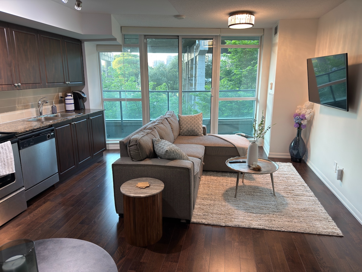 Welcome to the Fort York Flat! This 2 Bedroom, 1 Bathroom space has been thoughtfully renovated using a mixture of modern and contemporary decor to create a relaxing, upscale place to kick back while enjoying everything Downtown Toronto has to offer. Our location and smart lockbox located at the front doors makes checking into the flat easier than ever, no need to worry about fussing with the front desk staff or waiting for elevators.