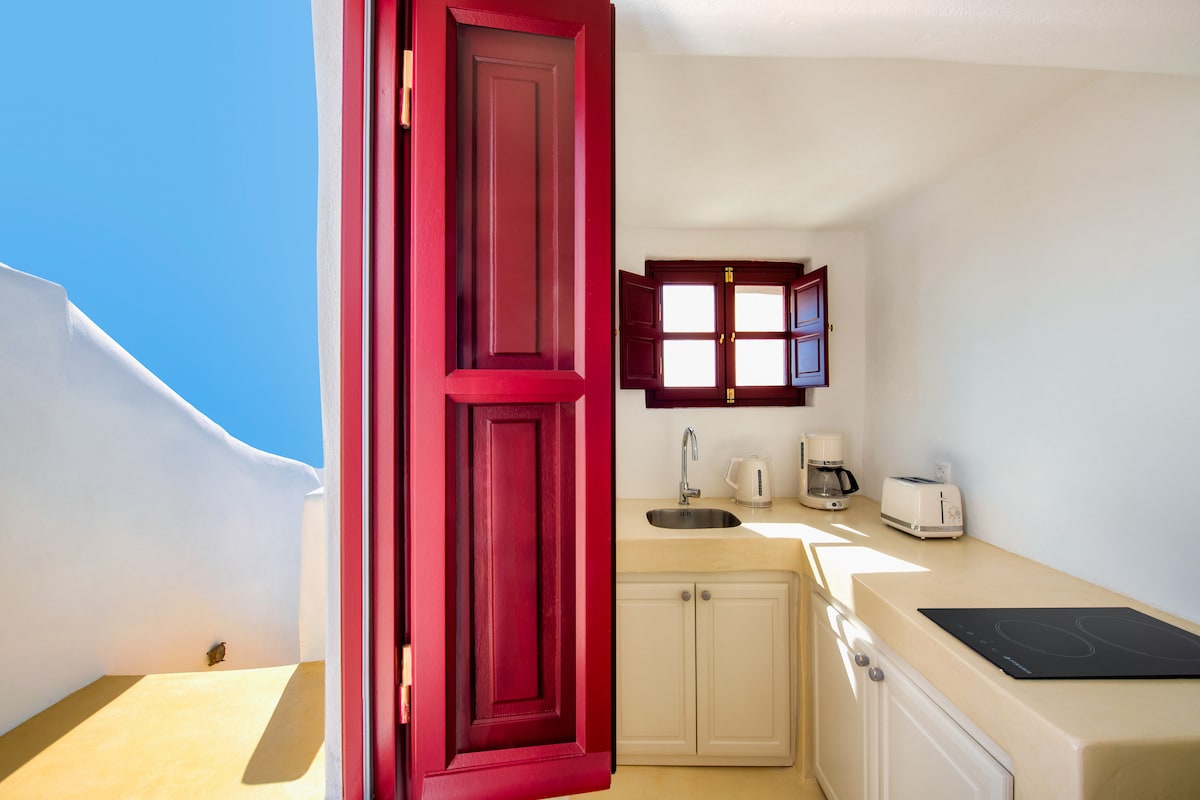 Located in the very heart of Oia, at a secluded position on the famous caldera of Santorini, Oia Spirit is a stylish complex of 8 stand-alone traditional cave houses, with access to a shared cave pool. This suite additionally features a private outdoor plunge pool. The view from its terrace is stunning, featuring the caldera and the two iconic blue domes of Oia. Santorini International Airport is about 17 km from Oia Spirit, and the Ferry Port at approximately 23 km.