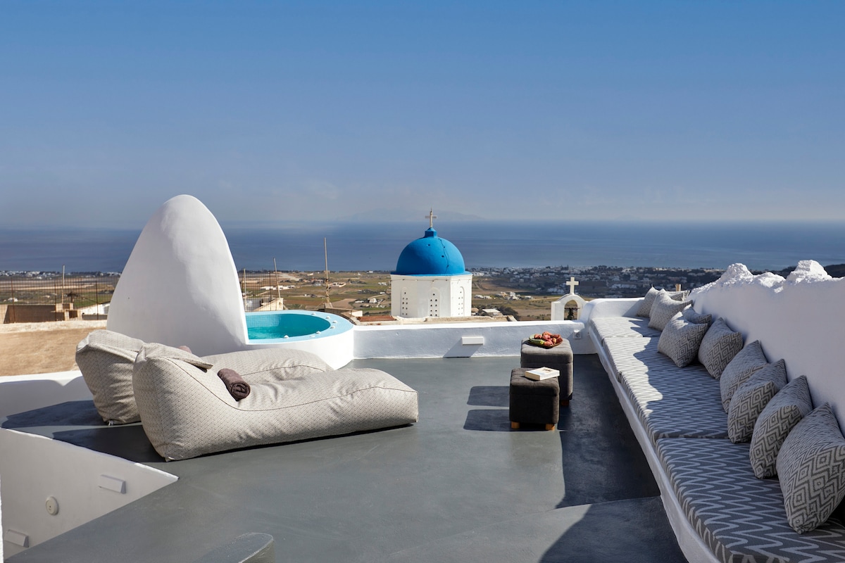 Blue Soul Luxury Villa is a sanctuary of elegance in the heart of Exo Gonia. Nestled on the hillside towards Pyrgos, it offers breathtaking views of the Aegean Sea, the village, and the rolling landscapes. Its highlight - a four seat hot tub - invites you to unwind in pure bliss. Thoughtfully designed with curated décor and a seamless blend of comfort and style, the villa promises a unique and tranquil escape, where every detail enhances your Santorini experience.