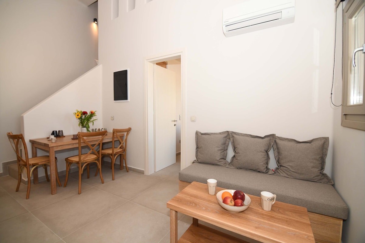 Martynou View Suite is a private property, located in Santorini Pyrgos village.Just a few steps away from restaurants cafe and more shops.Only 10 minutes driving distance from central Fira and the best beaches.This is an ideal choice for couples or small families.Suite offers private parking,a spacious living room with a kitchen, bathroom,double bed,air condition,coffee machine, 2 smart TV,fridge(offer bread jam honey butter),Wi-fi, and a private heated mini pool(jacuzzi)with stunning sea views!