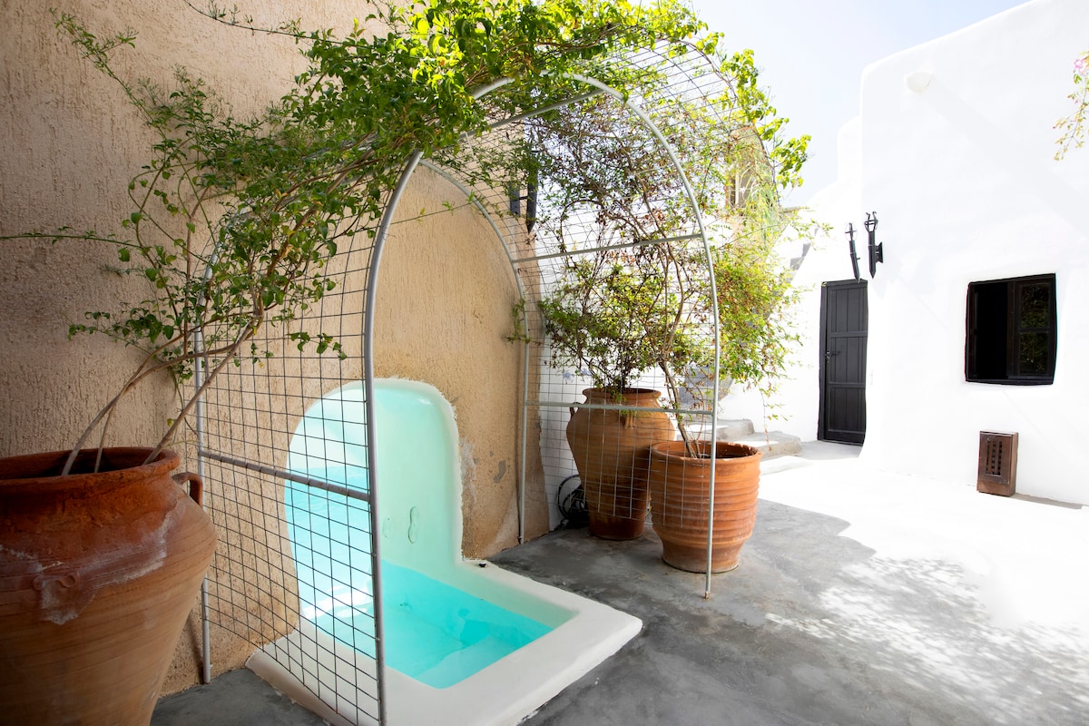 This spacious little villa is located at the highest point of the village with stunning and unlimited views to the famous caldera and the volcano. The king size bed and the hot tub at the balcony will give unique moments of relaxation and enjoyment