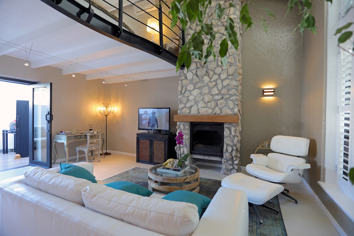 Self-Catering Unit for 4 guests with BACK UP POWER, Amour is situated in the Banhoek valley on a farm, 7 km outside of Stellenbosch and is surrounded by mountains. Ideal for couples with kids, solo adventurers and business travelers. You need to book Amour (left section) which sleeps 2 couples or a family with kids that is completely private. Wifi with TV streaming . Both rooms have desk space. Cosy lounge with a fire place downstairs. Come and experience luxury country side living.