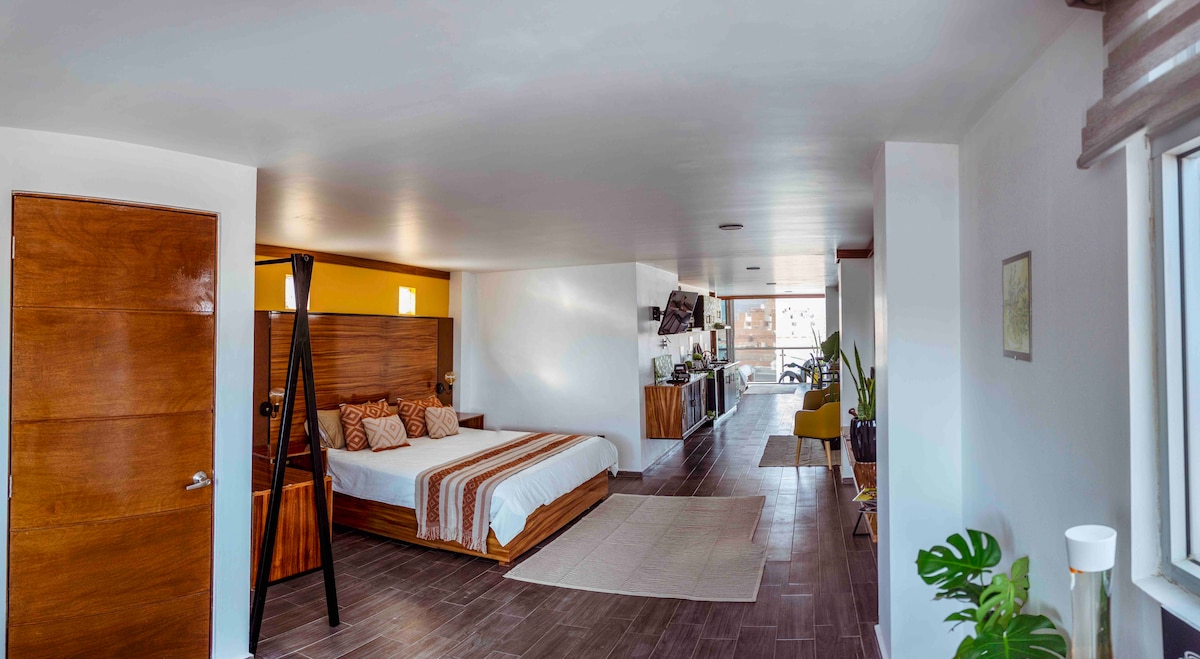 Descubre León desde un punto privilegiado. Nuestro departamento, ubicado a una cuadra del Arco de la Calzada, ofrece una vista única al Arco desde el balcón, ideal para disfrutar la esencia de la ciudad. A solo dos cuadras del majestuoso Templo Expiatorio y rodeado de atractivos culturales y gastronómicos, este espacio ha sido diseñado para viajeros que buscan una experiencia cómoda, estética y perfectamente ubicada