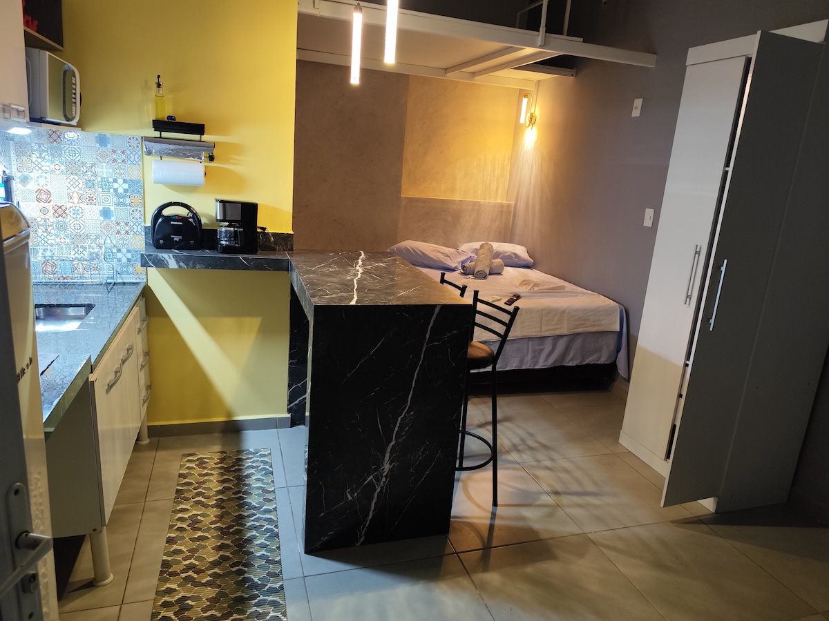 O apartamento conta com cozinha equipada, banheiro com chuveiro elétrico , ambiente único com ar condicionado, condomínio possui toda estrutura para curtos períodos de viagem como lavanderia e mini mercado, além de conter academia e piscina no último andar. Está localizado a 800 metros do Terminal Rodoviário do Tietê (metro e rodoviária), a 1,5km do complexo Anhembi (sambódromo e centro de exposição), a 2 km do Expo Center Norte e Shoppings Center Norte e Lar Center.