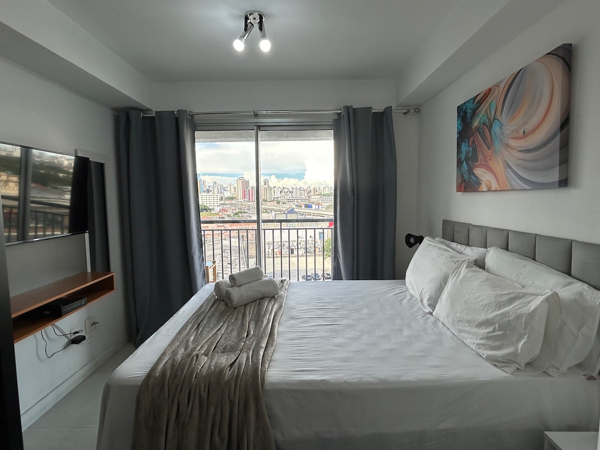 Nosso estúdio é perfeito para casais, solteiros (3 adicional) cama de casal, opção de duas de solteiro e cama auxiliar de 60 cm. Podemos configurar as camas como você preferir! Excelente localização! Próximo de tudo! - 300 mts Metrô e rodoviária Tietê - 1,3km Expo center Norte - 1,2 km Anhembi - Canindé - Sambódromo - Holiday Inn - APCD - Campo de Marte - José Paulino. Além do comércios e entretenimento ao redor tais como: Shopping Center Norte, Americanas, Pão de Açúcar, Rei do Mate e mais