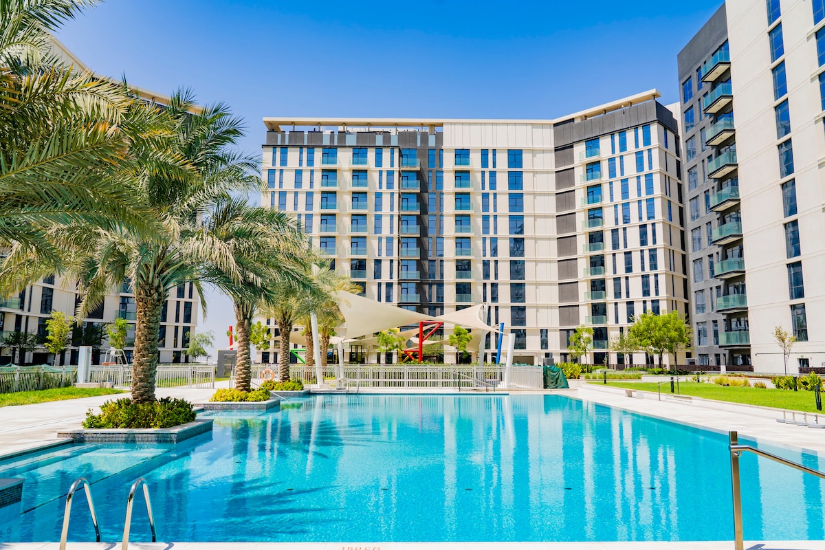 Wake up to a splendid sunrise and panoramic golf course views from your private balcony. This fully furnished, well-equipped apartment is perfect for a workation, family visit, couple’s getaway, golf retreat, or solo stay. A supermarket is right downstairs, with restaurants next door, plus Radisson Blu and Damac Hills Mall (Starbucks, Spinneys, Costa & more) just minutes away—comfort, convenience, and views in the heart of Damac Hills 1.