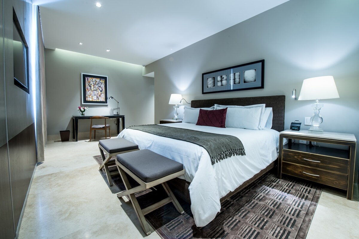 Disfruta del mejor descanso en nuestra Suite King, equipada con balcón y sofá cama, perfecta para parejas o familias. Cuenta con: aire acondicionado, Smart TV, frigobar, tostador de pan, secadora de cabello, agua potable rellenable, escritorio, clóset y ropero. Además, encontrarás amenidades de tocador, ducha con agua caliente las 24 horas y todo lo necesario para que tu estancia sea cómoda y placentera.
