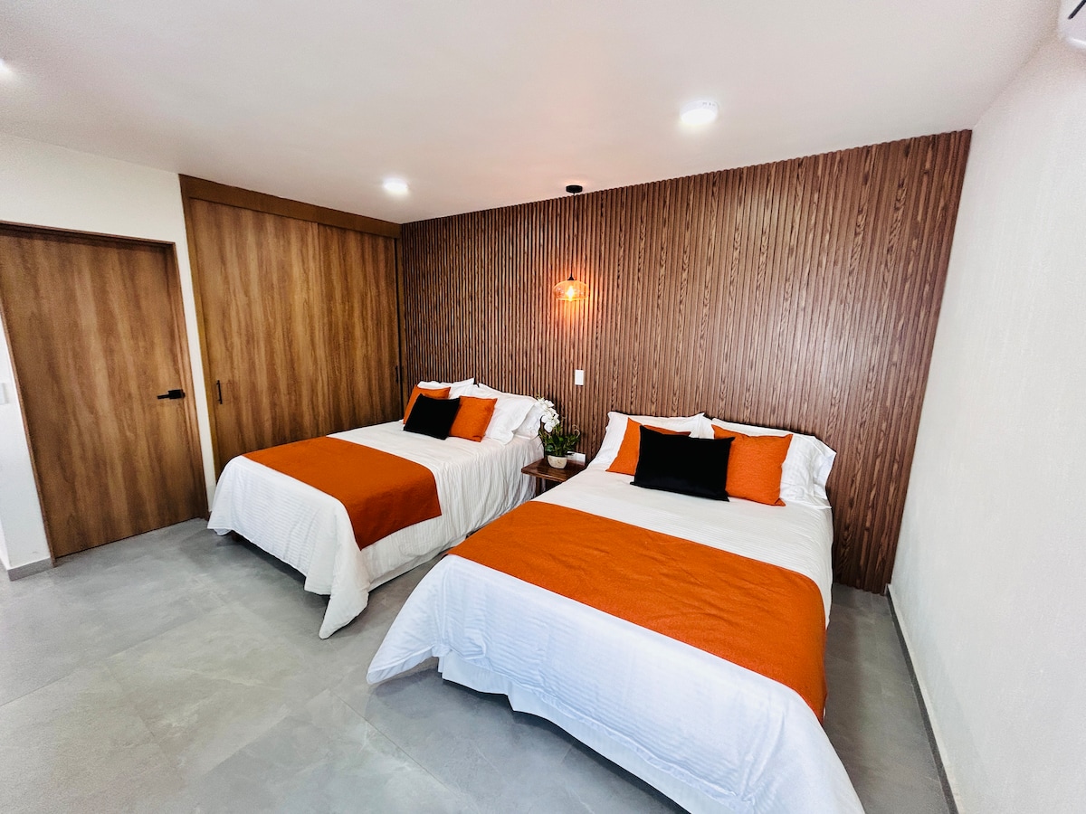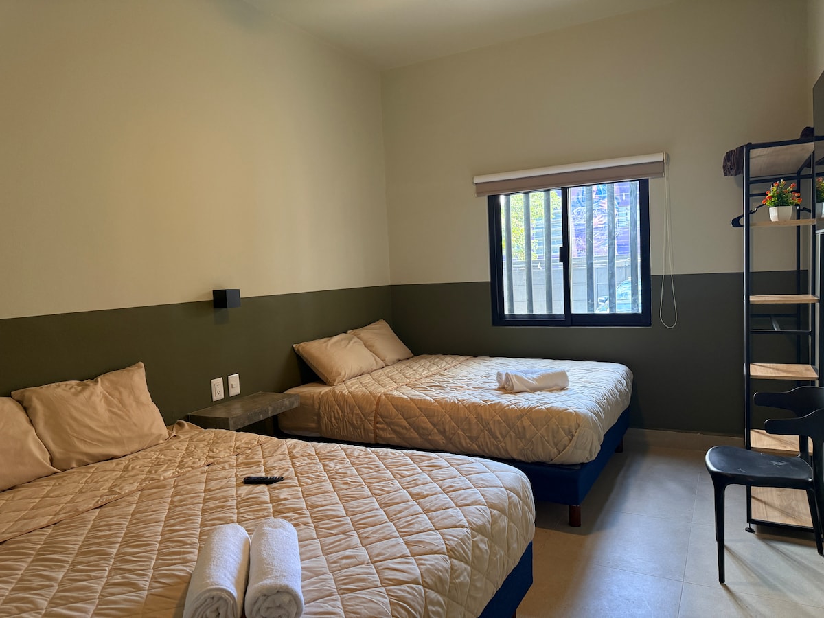 Disfruta de un espacio armonioso y funcional, ideal para familias que buscan comodidad en una de las zonas más vibrantes de Guadalajara. Equipada con una cama King Size ultra cómoda y una litera con dos camas individuales, esta habitación ofrece amenidades pensadas en tu confort: aire acondicionado, TV, WiFi, caja de seguridad y baño completo con regadera. Vive una experiencia única en la zona de fiesta y cultura de Chapultepec. Descubre los tesoros locales desde este moderno alojamiento.
