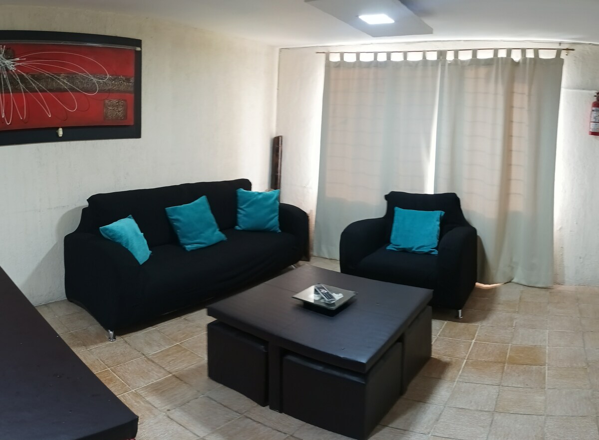 Excelente departamento cómodo, funcional y seguro; situado en la planta alta de una casa habitación habitada por la anfitriona, su esposo y Luna, un perrita de 11 años. Se encuentra ubicado en calle cerrada en la Col. Chapalita, a solo 2.1 km (8 min) de la Expo Gdl y de dos centros comerciales: Plaza del Sol y La Gran Plaza, creado para brindar la mejor de las estancias a quienes viajan solos o acompañados: Amigos, viajeros de negocios y turistas de nacionalidades distintas.