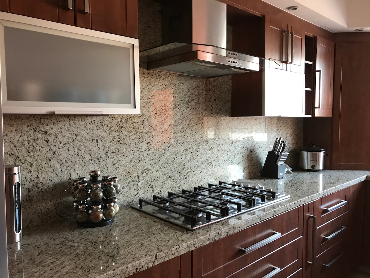 Super departamento a tres cuadras de Expo Guadalajara! Equipado, amplío (160 m) é inteligente, limpio y de buen gusto. Cómodas camas y cortinas blackout en las habitaciones para un descanso reconfortante y continuo. Cocina grande con barra desayunadora, equipada con Cafetera Nespresso (trae tus cápsulas), Cafetera, tostador, microondas, licuadora y todo lo necesario para sentirte en casa. Estacionamiento propio a la puerta. Excelente ubicación, a 5 min de Plaza del Sol y acceso a vias rápidas.