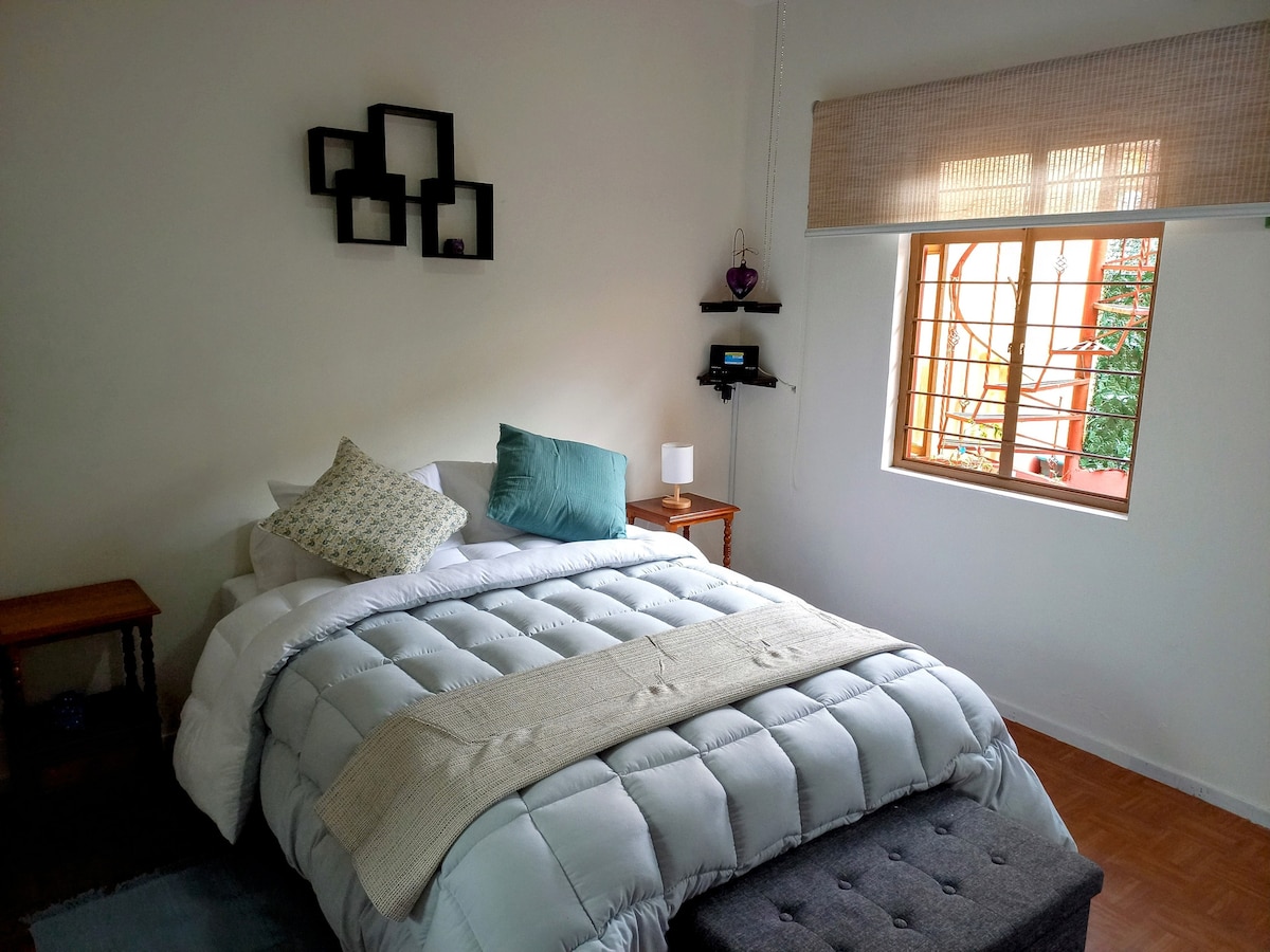 Ideal para 2 personas que buscan comodidad, tranquilidad y descanso. Minidepartamento privado, en una zona privilegiada, turística y segura. Servicios: cocina, cama matrimonial, baño privado, AIRE ACONDICIONADO, patio de servicio, SmarTV, Netflix, WIFI y estacionamiento interior. Ubicado a 5 min a pie de Plaza Valle, Cinepolis, Casa Vegas, Tobogán de la montaña, Nido de dragones. Planetario, Museo de Arte del Estado, Ojo de Agua, Coliseo LA CONCORDIA. Muchas rutas de transporte público cerca.