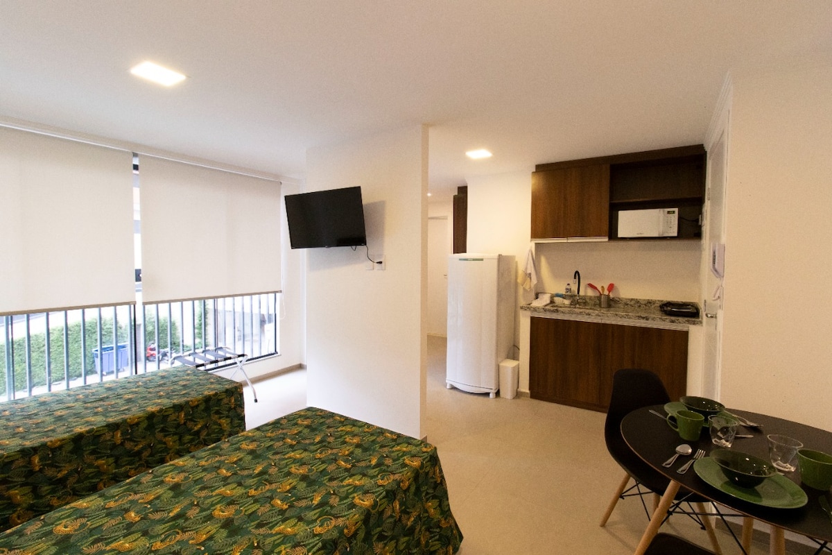 PRÓXIMO DE TUDO: Expo Center Norte, Shopping Center Norte, Metrô Tietê, Rodoviária Tietê, Anhembi, Sambódromo, Marginal... Studio confortável, aconchegante e completo para até 3 adultos e 1 criança. Cama box de casal com cama auxiliar. Cozinha com todos os eletros domésticos e utensílios. Roupas de cama, mesa, banho e Itens de higiene. Ar condicionado, secador de cabelo, ferro de passar...