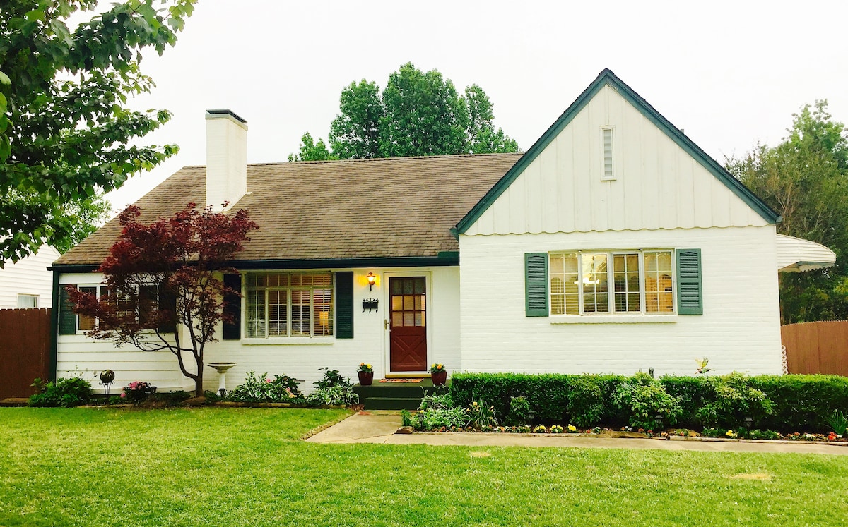 Located in the heart of midtown Tulsa, just two blocks away from Expo Square, in the safe and charming Mayo Meadow neighborhood. Also nearby: The University of Tulsa, Downtown Tulsa, hospitals, shopping, parks, restaurants, bars, etc. With its original hardwood floors and glass doorknobs, yet newly remodeled spaces, this home retains its historic charm while being beautifully modern and updated. It's perfect for solo travelers, couples, families, business travelers...anyone coming to Tulsa!