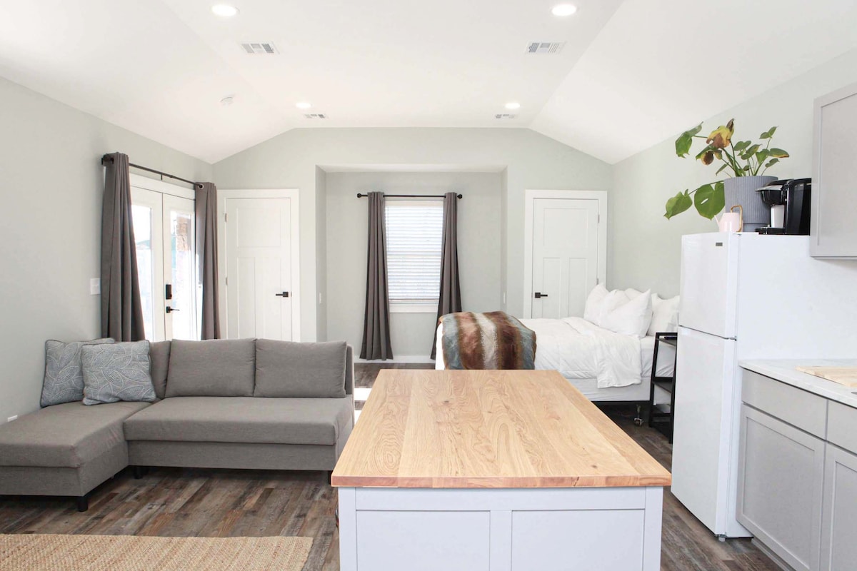 Unwind and refresh in this calm, stylish space. Upscale, minimalist design complete with a pristine chefs kitchen. High end (Cozy Earth) linens throughout, truly a boutique hotel experience with tranquil outdoors spaces! Idyllic mid-town location, nestled into charming Florence Park with mature trees and sidewalks. Easy access to Cherry Street (2 mins), Utica Square (3 mins), Tulsa Fairground and Expo Center (4 mins), Downtown/Art's District (6 mins), and Riverside/Gathering Place (8 mins).