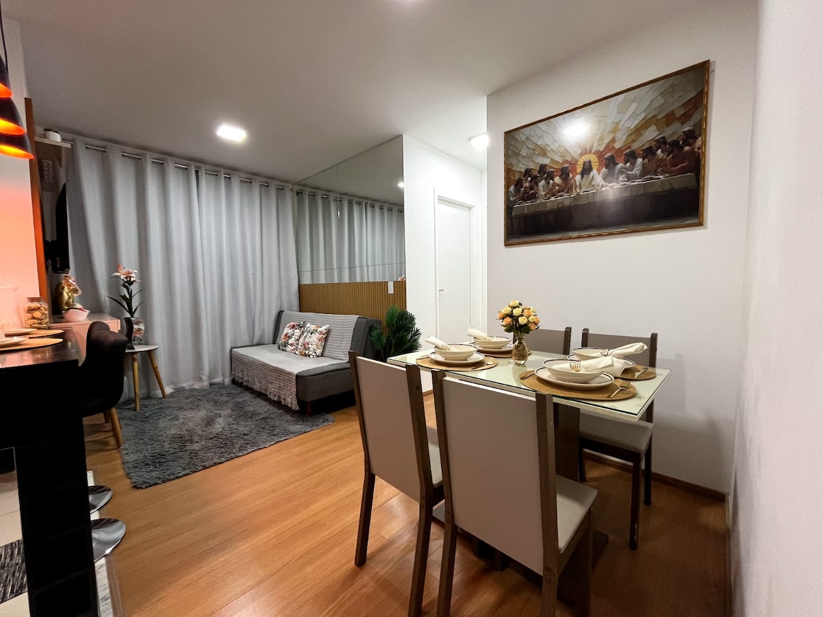 Enjoy an elegant experience in a high-standard apartment, conveniently located right next to Arena MRV. Be amazed by the stunning sunset visible from every window, and best of all, you can walk to Arena MRV without any concerns about transportation or parking. The condominium offers a complete leisure area with playground, parking space, and a shared OMO laundry facility, ensuring comfort and convenience throughout your stay.
