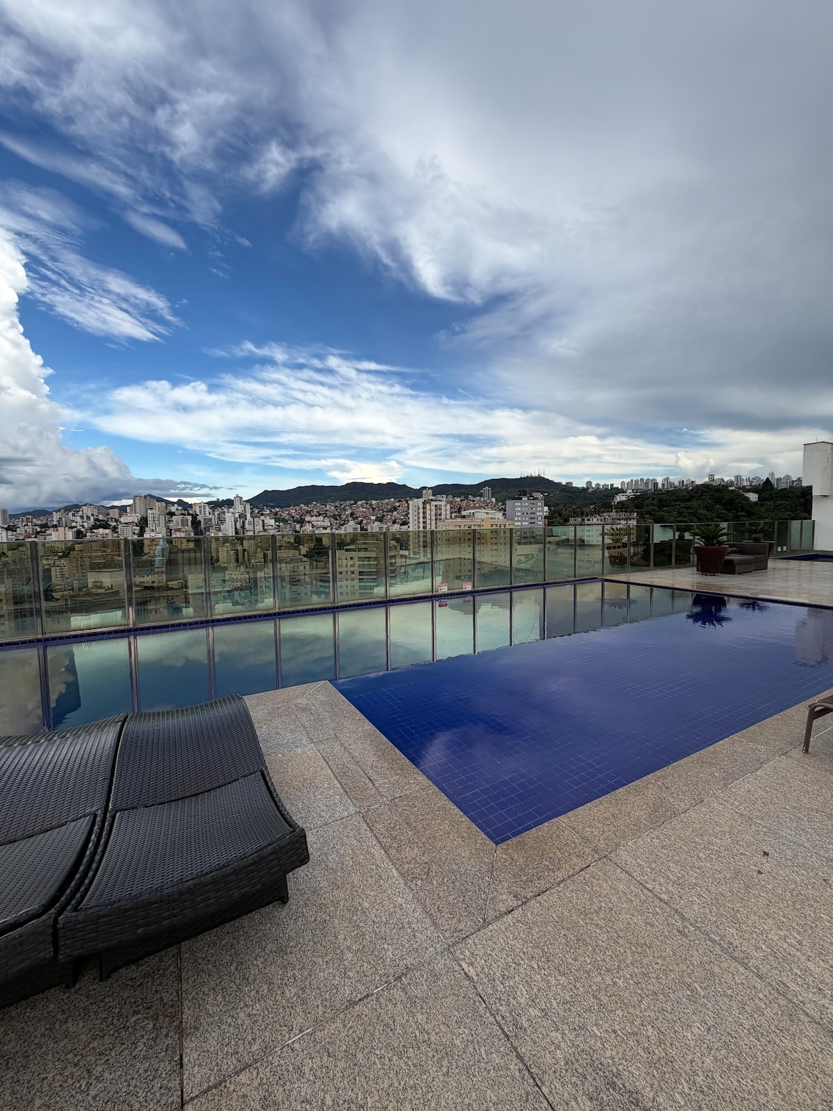 Com 70 m2 , para quem quer privacidade e independência . Na Savassi à duas quadras da Praça da liberdade e do Shopping Pátio Savassi. Com uma suíte, banho reversivel social , sofa cama para hospedes, janela da suíte antiruídos, ar condicionado quarto e sala, wifi300 megas, smartv de 75 polegadas , Hometheater, cozinha completa , microondas, serviço de quarto, camareira, manobrista, piscina , academia, sauna, restaurante e portaria 24horas.