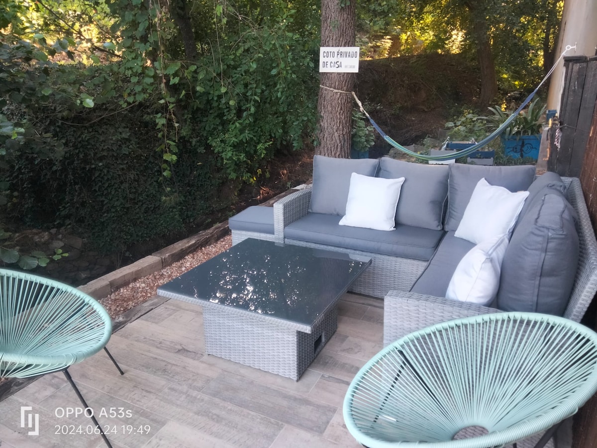 preciosa casa con capacidad 10 personas en Jarandilla de la Vera (Cáceres-España). Entorno piscinas naturales, sierra de Gredos, Valle del Jerte, rutas para senderismo. Dispone de jardín privado y piscina con delicioso porche y barbacoa.