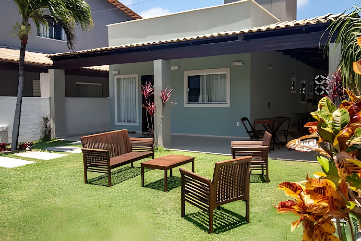 Desfrute de duas casas espaçosas com piscina, sauna, churrasqueira, sinuca, totó, um lindo jardim e terraço com vista para o mar e garagem pra 4 carros! A casa térrea tem 3 quartos (1 suíte) + suíte na dependência. O duplex tem 3 quartos (2 suítes), sendo a térrea reversível para sala. Tudo isso pertinho das dunas e do mar! Além disso, temos a casa da caseira, ela estará lá para recebê-los e caso interesse, pode contratar os serviços de limpeza e cozinha dela se houver disponibilidade.