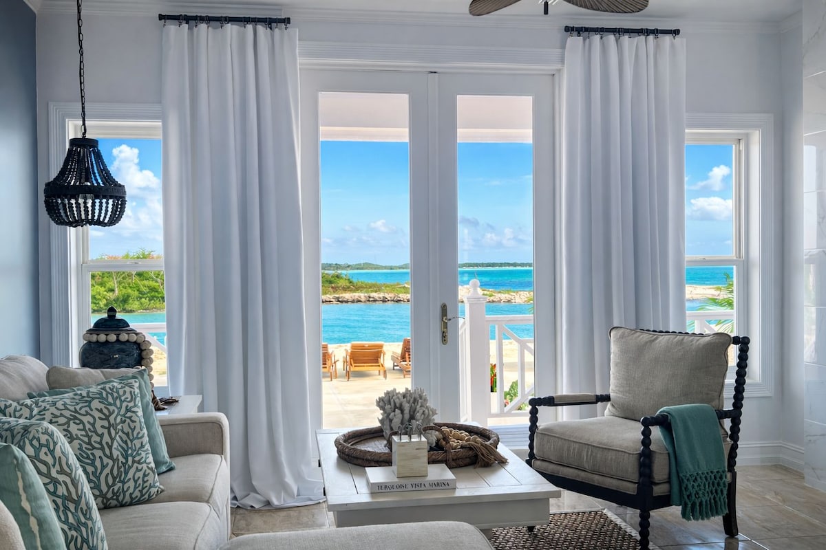 Shoreline Flats: A Waterfront Escape on Bonefish Flats Your dream escape in Great Exuma! This newly renovated 2-bedroom, 1-bathroom home is perched right on the pristine bonefish flats. Our beachside escape offers breathtaking views of turquoise waters and powdery white sand just steps from your door. Our outdoor seating area invites you to sip morning coffee as the sun rises or enjoy a starlit evening after watching the sunset over the water with the gentle sounds of the waves.