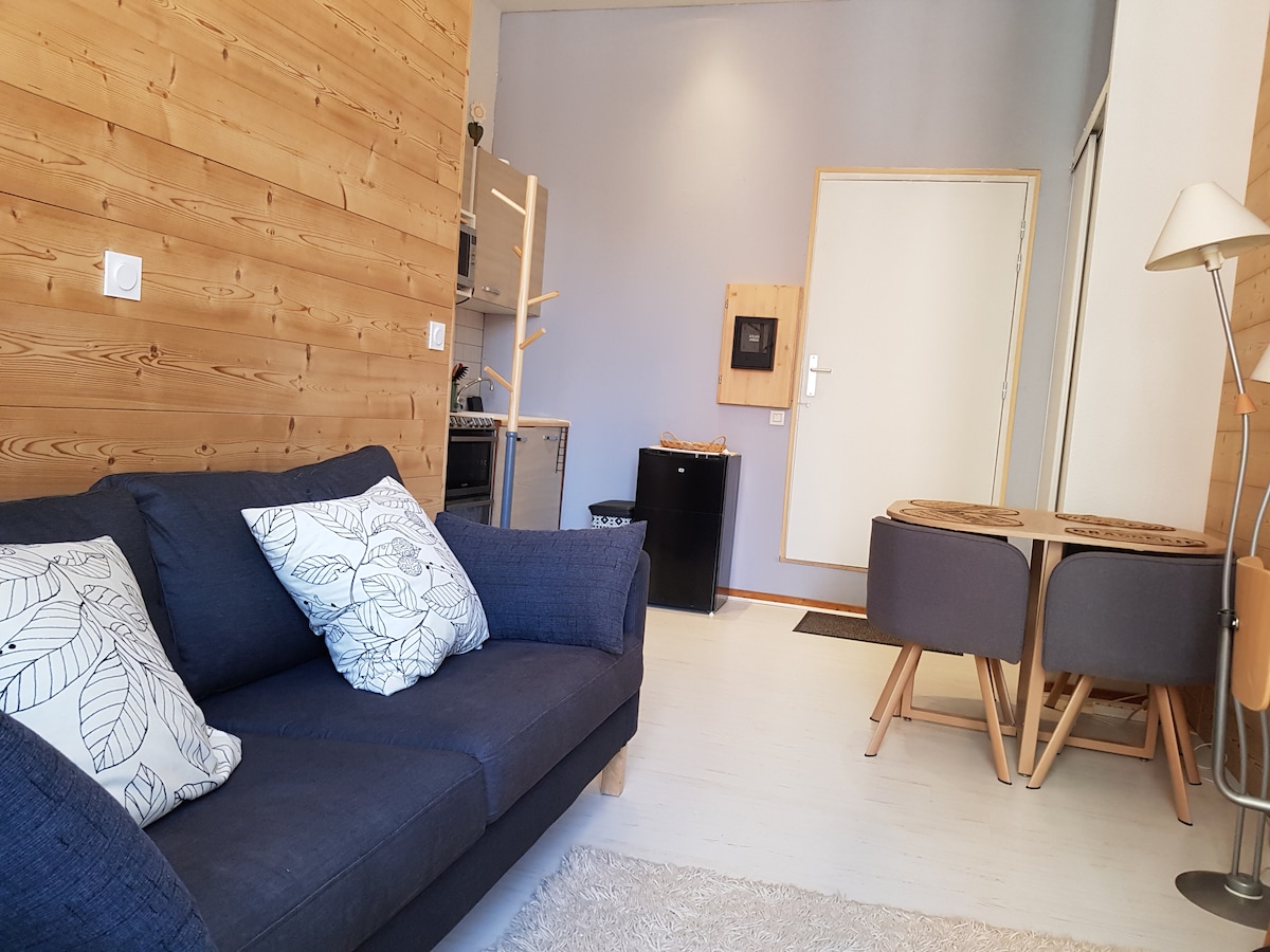 Beau studio calme, parking fermé, à 30 mn du ski !