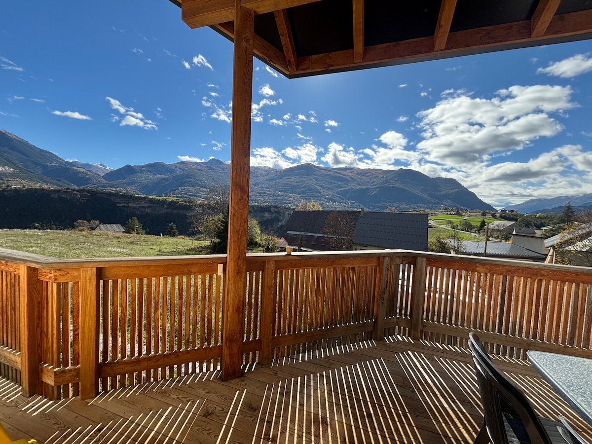 Notre chalet est situé au calme dans un jardin privatif. Sa terrasse de 30m2 vous permettra de profiter d'une vue panoramique. Parking gratuit.Nous avons apporté un soin particulier aux équipements et à la décoration pour une ambiance cocooning. A 5 mn à pied du centre de Guillestre vous trouvez: tous commerces , cinéma, restaurants, supermarché. Aux portes du Queyras, Vars, Risoul, et de l'embrunais sa situation géographique vous donnera accès à un terrain de jeu illimité été comme hiver.