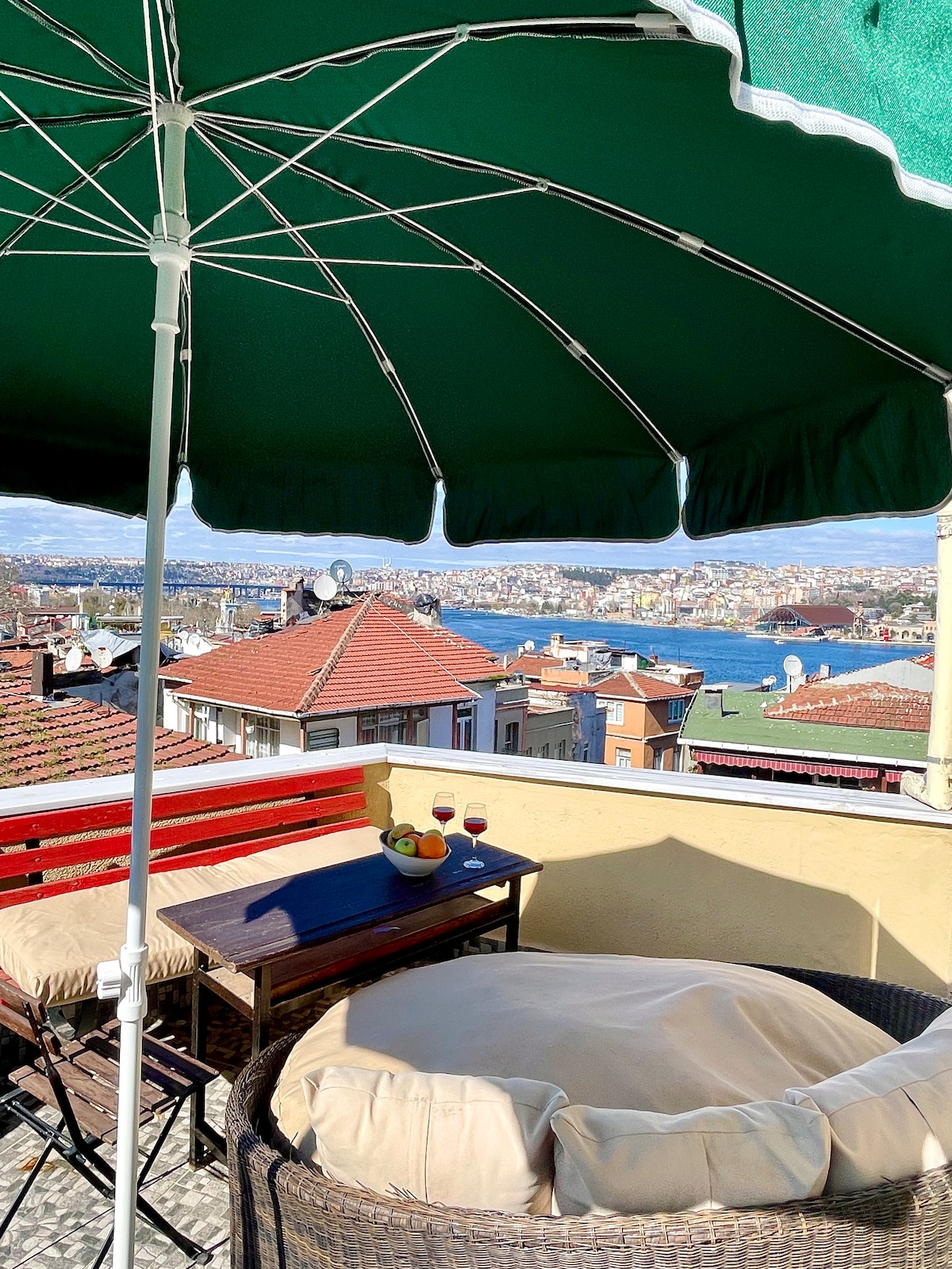 Unique space overlooking the Golden Horn! ☞ Walk Score 60 (Walk to cafes, dining, shopping etc.) ☞ 1000 Mbps wifi + workspace ☞ AC + radiant heating ☞ Kettle ☞ 32” HD TV ☞ Outdoor dining area ☞ Free street parking ☞ Upright piano 7 mins → Taksim 5 mins → Emininou 30 mins → Istanbul Airport ✈