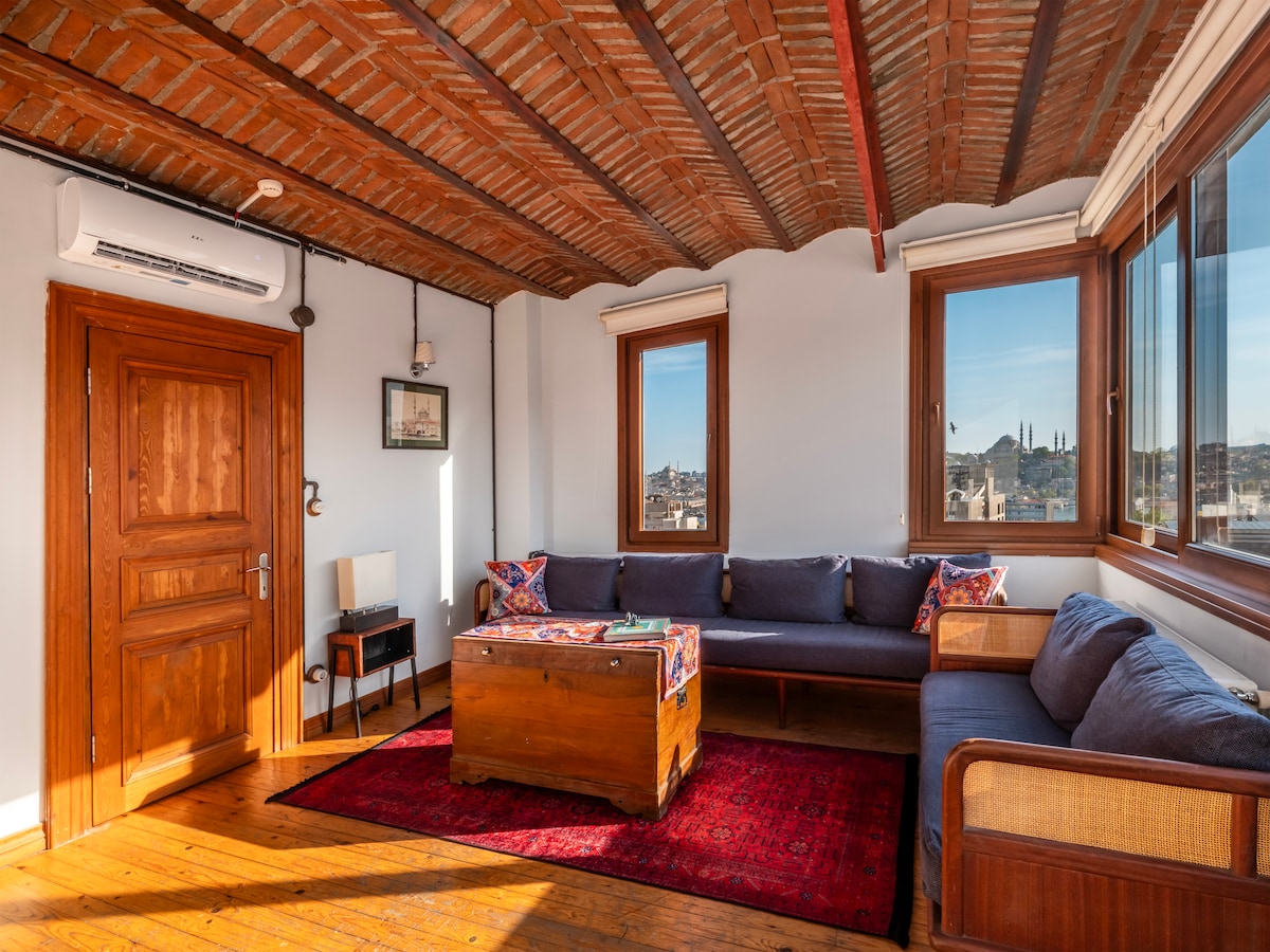 You will have the opportunity to have a panoramic view of Istanbul in this apartment with a terrace overlooking the magnificent Galata Tower and the Bosphorus. It's time to enjoy yourself in this apartment with two terraces. Our apartment is located 10 steps from Galata Tower, 4 minutes from Galataport, and 5 minutes from Istiklal Street, the heart of Istanbul. Thus, you will be able to easily reach the center from anywhere without using a car.