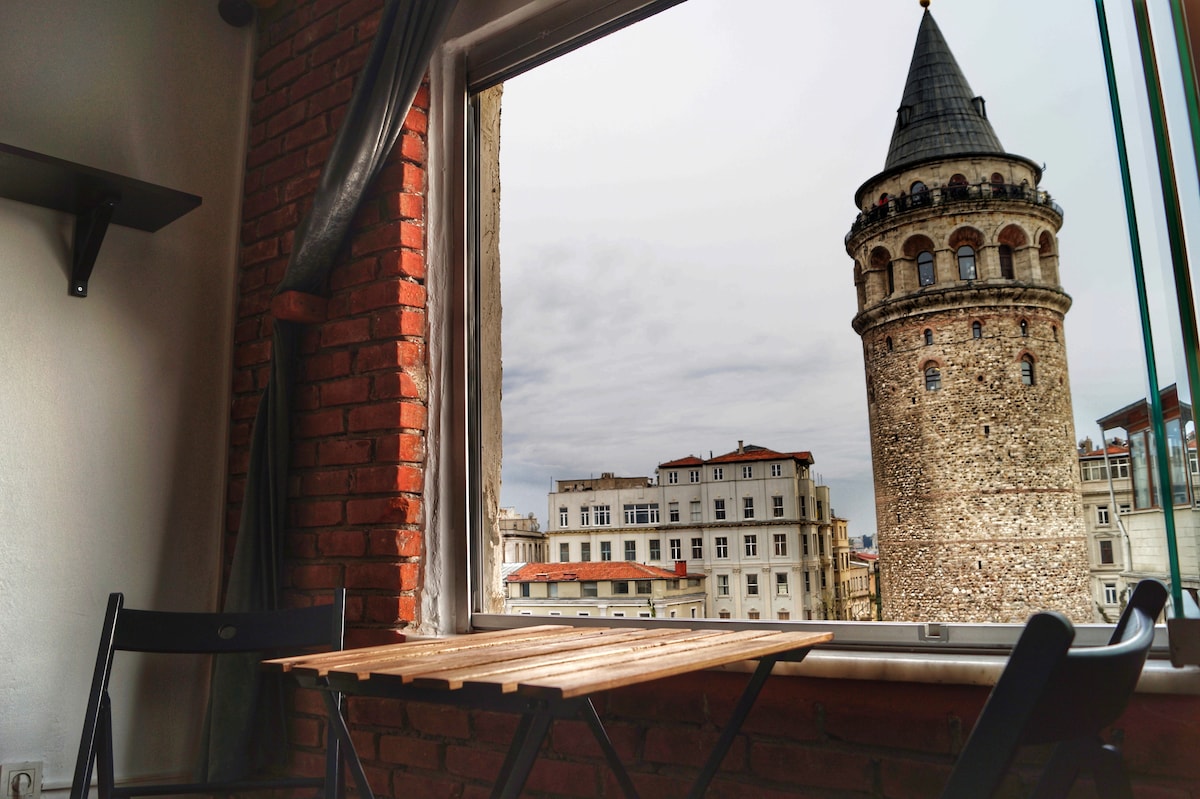 Every corner of this house is for sharing photos :) The magnificent view of the Galata Tower seen from the window is colorful, vivid and visually fascinating. A perfect home for selfies, stories and reels. Our apartment has a completely private, fast Wi-Fi, smart TV, a comfortable bed, a high-performance air conditioner, a mini kitchen and, of course, numerous photo corners. Stay and share!