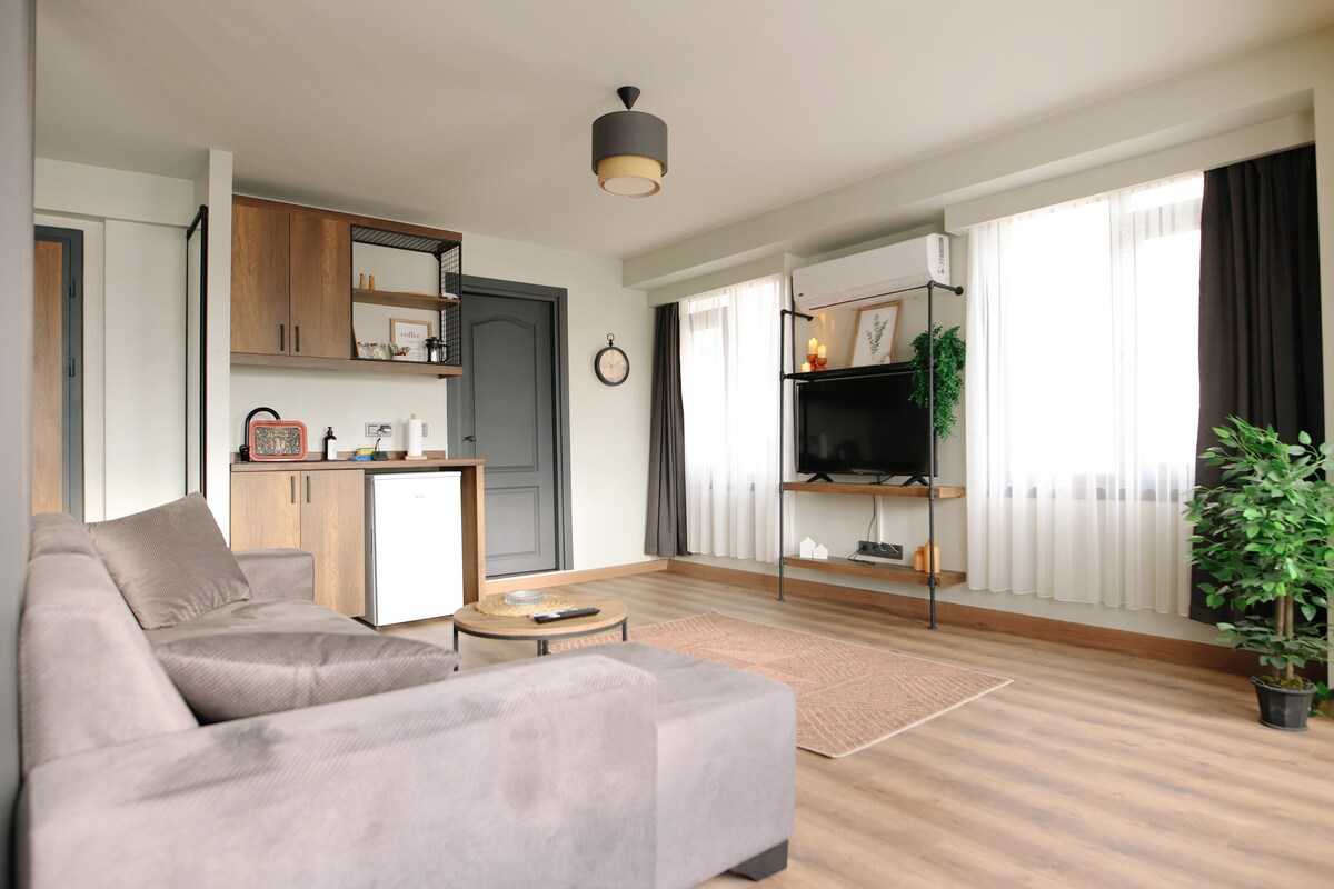 Step into a thoughtfully styled home in the heart of Istanbul. This garden level one bedroom apartment combines modern comfort with everyday practicality, creating a calm escape within one of the city’s most vibrant neighborhoods. Ideal for both short getaways and longer stays. Whether you are exploring the city or working remotely, everything you need for a smooth and comfortable stay is right at your fingertips.