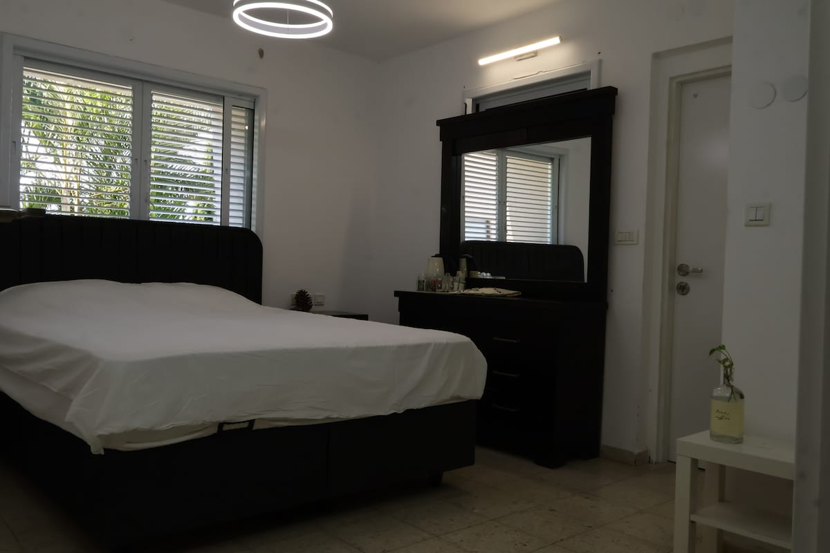 Settle into our serene and stylish guesthouse in a peaceful part of Ra'anana. Ideal for couples, small families & business travelers. Enjoy a fully equipped kitchen, cozy living area, TV, fast Wi-Fi, and private entrance. The space offers air conditioning, heating, and all essentials for a comfortable stay. Free parking, with long-term stays welcome. A peaceful home with modern conveniences awaits you! ★ "The perfect Airbnb! Lovely, quiet, and clean. The host was incredibly helpful with all!"