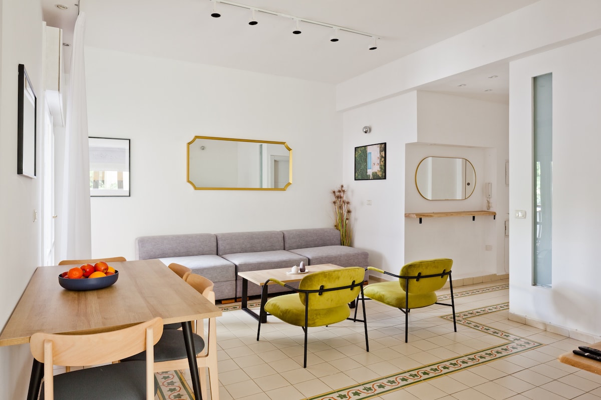 This is a beautiful two-bedroom apartment that enjoys a spacious living room, 2 nicely sized bedrooms, and a fully equipped kitchen that has everything you need to prepare meals during your stay. This is a renovated classic Bauhaus apartment with a green balcony, Comfortably sleeps up to five guests, making it perfect for families or groups of friends. Both bedrooms feature comfortable beds and plenty of storage space for your belongings. just a minute was from the Beach and Dizingoff