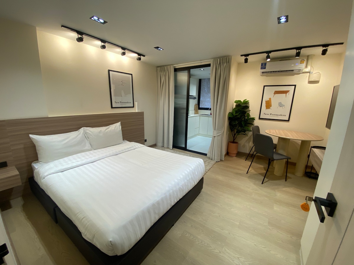 Soak up the modern charm of this nice decorated room. Fully furnished with all electric appliances that enhance the comfort of your stays ! The entire place will be yours [bedroom, bathroom,kitchen & living space] Soft&comfortable King size mattress & Muji bedsheet set. Free Wifi , 60" SmartTV + free Netflix, Air purifier, washing machine with drying function , iron , microwave oven , fridge, Electric hob & cooking utensils. Bathroom with rain shower & hot water machine.