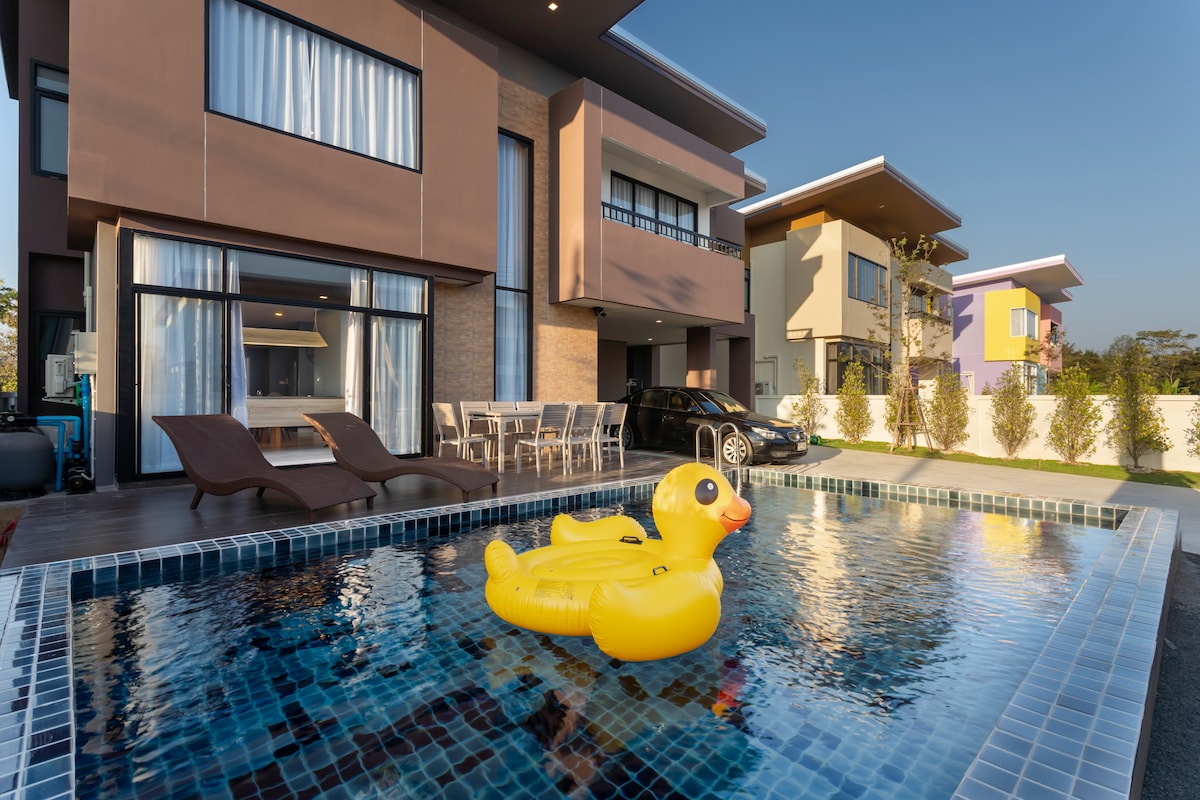 Our beautiful villa is a perfect getaway for family and friends. It is equipped with air conditioners, kitchen, work desk, private swimming pool and large green garden. Our family as architects built this place as a holiday home. And now, we want to share it with anyone to come and enjoy their time in Chiangmai. The home is located by the riverbank of a local neighbourhood. We would be more than delighted to have you, you friends and family over at Baan Thip Villa. For more details read below: