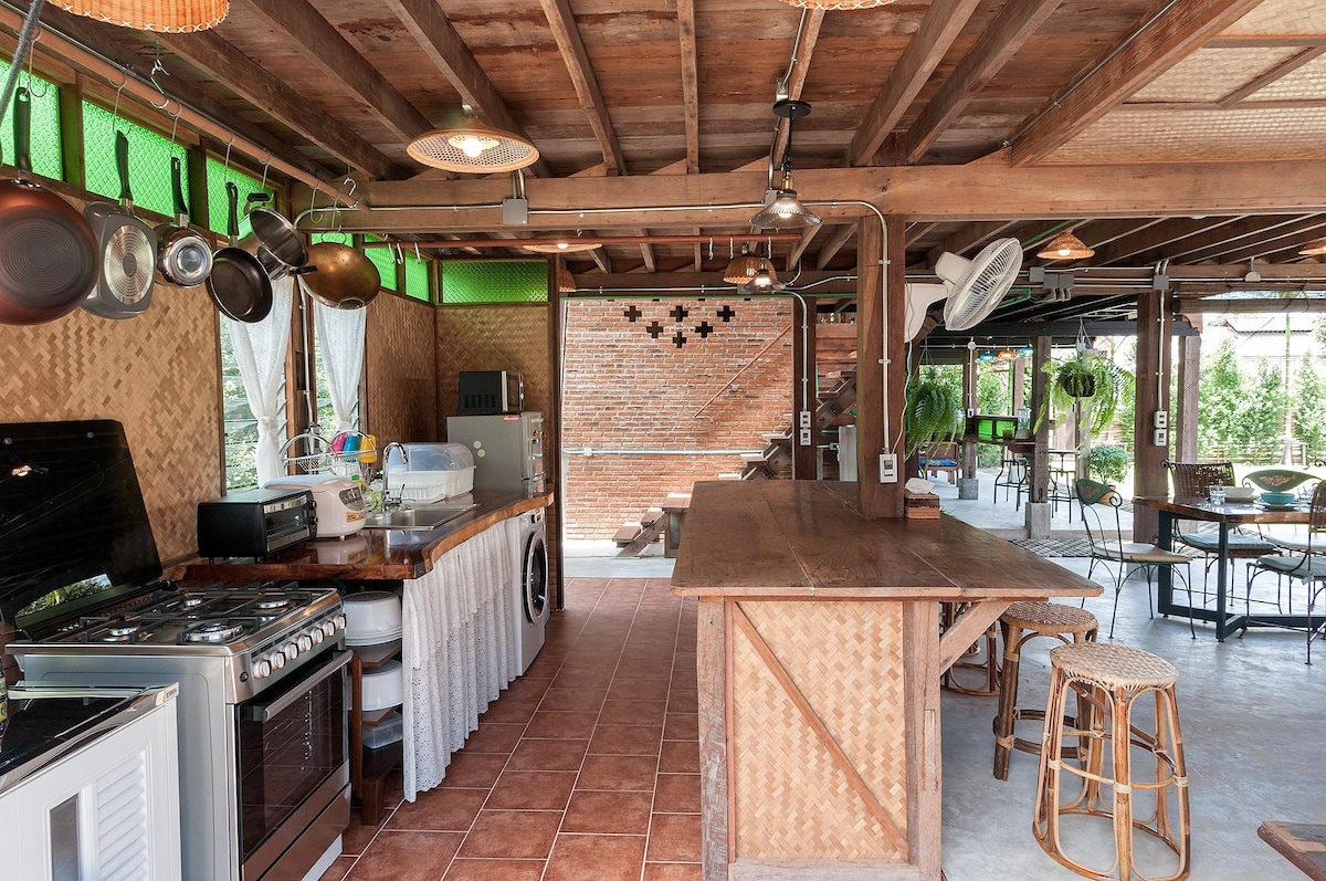 Our beautiful villa is a perfect getaway for family and friends. It is equipped with air conditioners, kitchen, work desk, private swimming pool and large green garden. Our family as architects built this place as a holiday home. And now, we want to share it with anyone to come and enjoy their time in Chiangmai. The home is located by the riverbank of a local neighbourhood. We would be more than delighted to have you, you friends and family over at Baan Thip Villa. For more details read below:
