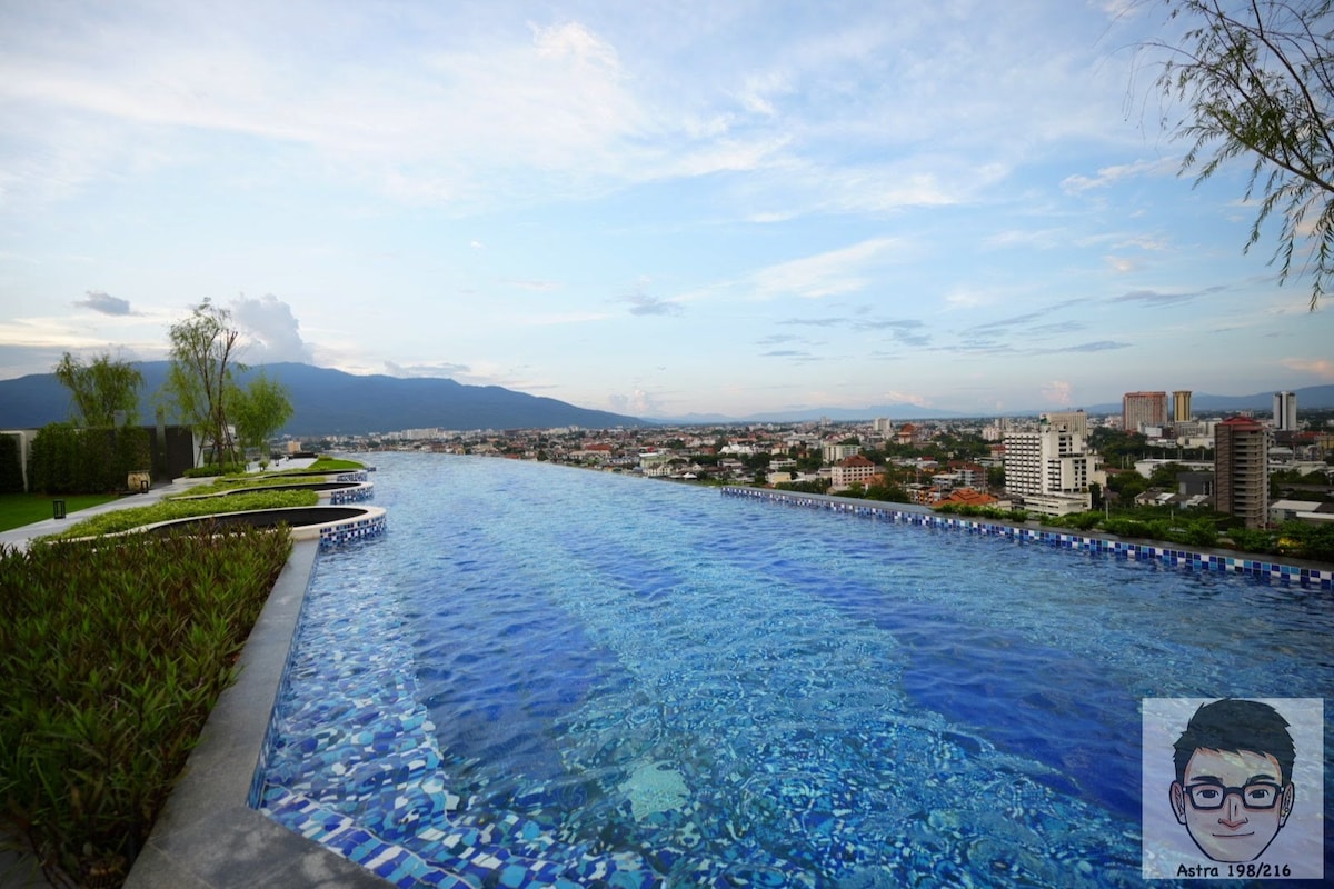 Make your Chiang mai trip memorable by staying at THE ASTRA SKY RIVER. Brand new high-rise condo ,conveniently located on Chang Khlan Rd., 🏊♂️ 150-meter rooftop swimming pool, which is unique and beautiful in Chiang Mai. From the rooftop pool, you can see the panoramic view of Chiang Mai and Doi Suthep Mountain Opposite the apartment is Adcurve Community Mall with 7-11, KFC, Watson , B2S, etc. 1 km to Chang Klan Night Bazaar, 1.4 km to Chiang mai old city , about 5 km from the airport.