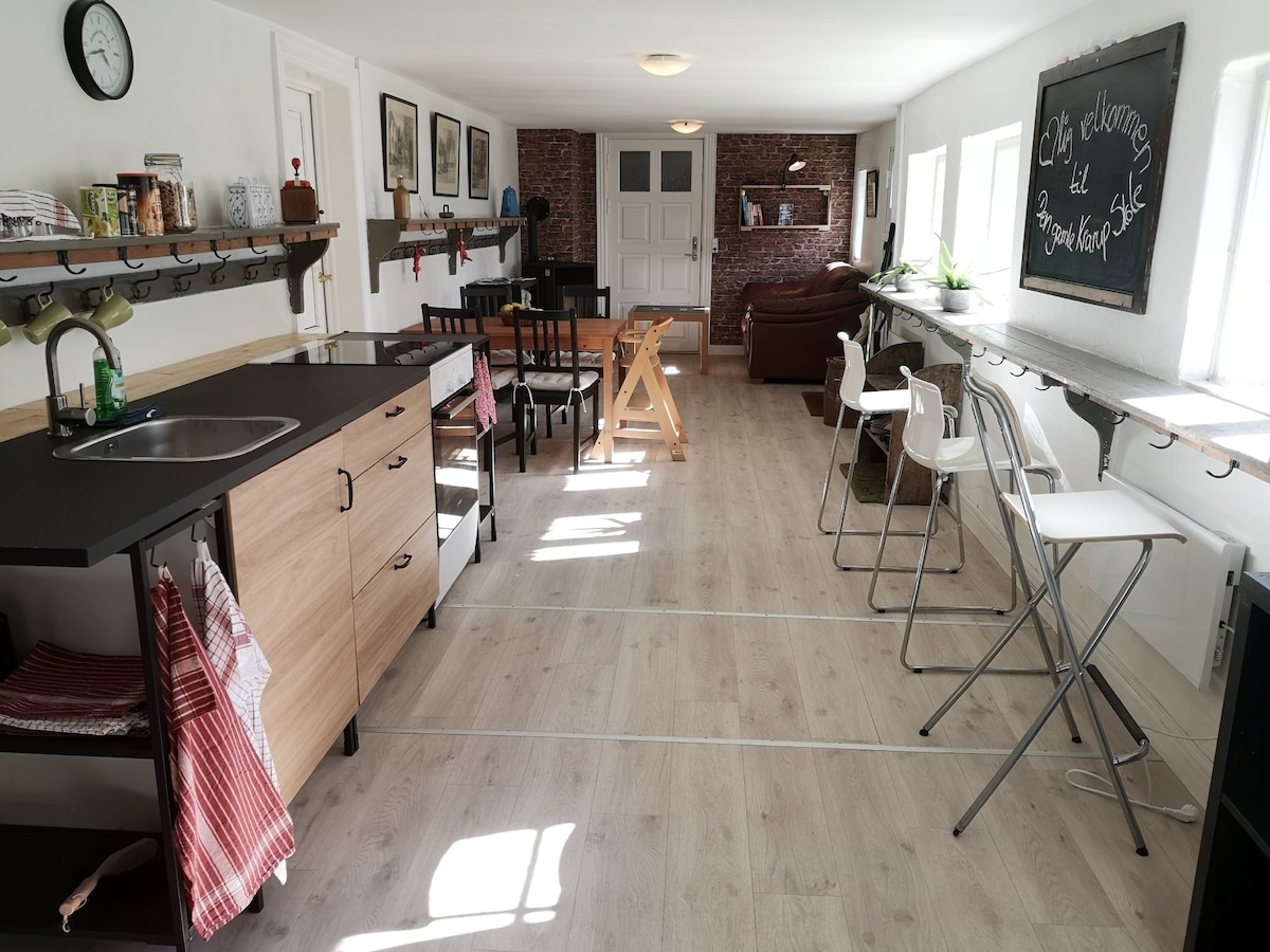 The house is an old school building from 1805, and is located at the western foot of the gently sloping church hill in the lovely village of Krarup. We offer not only bed and breakfast, but also various events throughout the year and a small shop where you can buy seasonal products. The house is surrounded by a cozy garden, which our guests are welcome to use, as well as toys for children. You are also welcome to feed our animals, collect eggs in the henhouse and harvest fruit and vegetables.