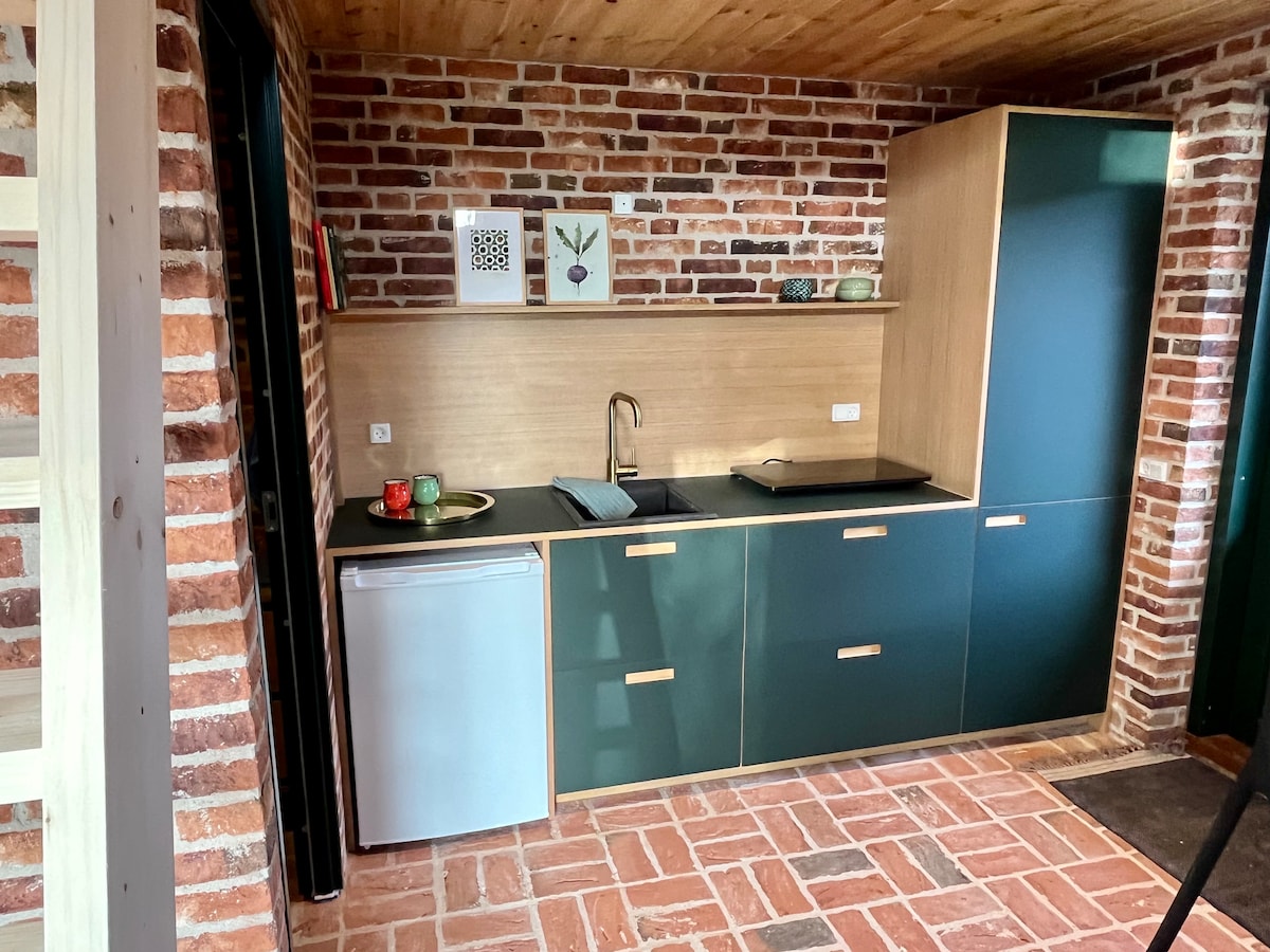 30m2 hyggeligt anneks, beliggende smukt ned til Ollerup sø. Opført i 2022 med rå murstensvægge og træ lofter, hvilket giver en helt speciel atmosfære. Egner sig bedst til 2 personer eller lille familie. 140x 200cm seng i stuen, samt en hems med mulighed for yderligere to overnattende gæster. (2 enkelt madrasser) Ikke ståhøjde på hemsen. Der er egen indgang, træ terrasse og adgang til Ollerup sø. Indtjekning fra kl.16.00 Udtjekning senest kl. 12.00 Spørg, hvis tidspunkterne ikke passer.