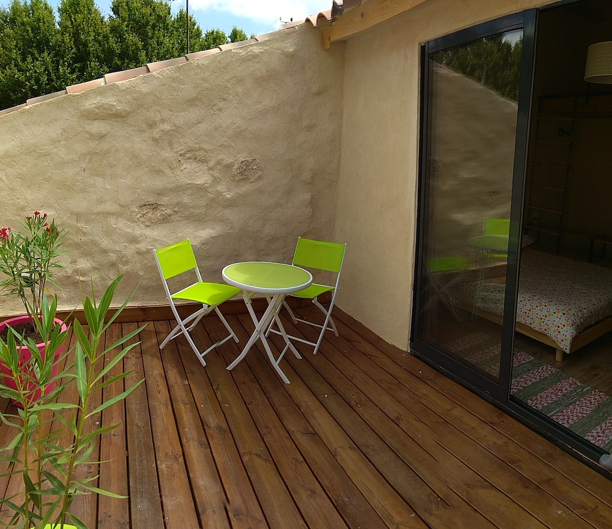 Appartement original et paisible, idéal pour des vacances reposantes au cœur de la campagne dans le village de Fabrezan. Il est composé au premier étage d'une chambre lumineuse, d'une kitchenette atypique installée dans un ancien piano, d'une table à manger, d'une salle de bain chaleureuse avec baignoire et d'une grande terrasse avec vue dégagée sur la nature. Au rez de chaussée, un coin salon avec canapé et table basse. Le tout dans un décor rural en accord avec sa bâtisse autrefois agricole.