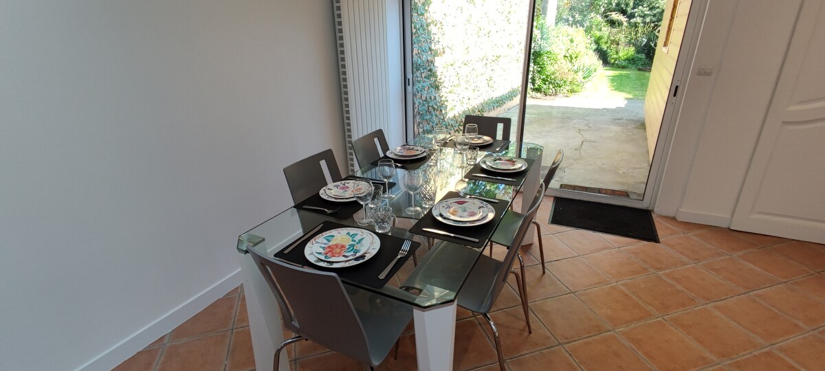 Maison plain pied cosy, toute équipée (TV, wifi, lave vaisselle, four, frigo, congélateur, micro-ondes, senseo, bouilloire, machine à laver). Capacité de 4 personnes + 1 bébé (lit parapluie). 2 chambres : possibilité de faire 4 lits simples OU 1 lit double et 2 lits simples. Draps fournis, lits prêts à votre arrivée. Parking gratuit avec aire de recharge pour véhicule électrique. Fêtes / soirées non autorisées-non fumeur