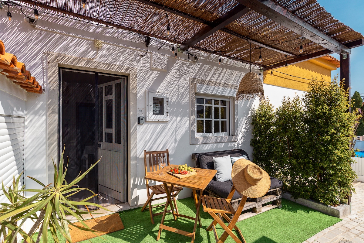 This Guest House located on the outskirts of Cascais Center, within walking distance to many restaurants, cafés, museums, beaches and a short 35-minute train ride to the center of Lisbon. Open-plan space, with a meter tall wood divider separating the living area with kitchenette from the bedroom, walls and closet covered in natural jute wallpaper, white marble bathroom with steam shower cabin. Our Guests are welcome to use the heated plunge pool at 32ºC all year round.