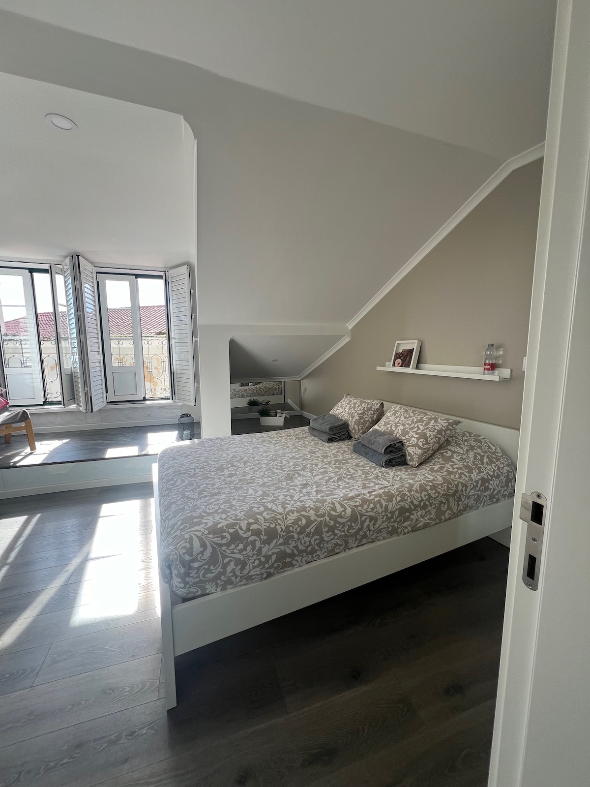 Modern apartment located in the oldest historic quarter of Lisbon, Alfama. On the top floor of a small building. Oriented to the east / west, it is an airy apartment with natural light and it has 2 balconies with view to the Tagus river. We privilege the entrance to the building with self-system(wifi/code). Perfect flat if you want to relax, but at the same time close to charming bars and restaurants in the heart of Lisbon.