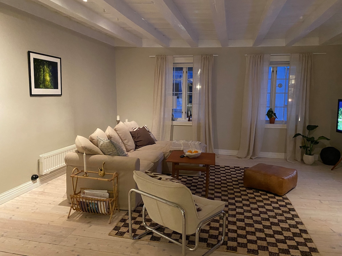 På dette stedet kan familien og venner bo i nærheten av alt, beliggenheten er sentral, kun 5 minutter gange til byen. Gratis parkering og internett. Leiligheten har ett soverom med en dobbel seng og en barneseng. I stua er det sofa med mulighet for å sove på. Innskjekk etter avtale og utskjekk før kl 12:00. Tusen takk for at du behandler boligen som ditt eget hjem. Utvask gjøres selv. Alt til utvask står klart, ved ønske kan et gebyr på 1000kr tilkomme.