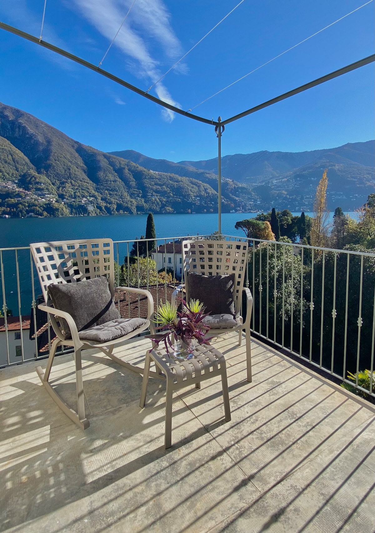 Daisy is boho-chic 2-room, 45m²/485 sq. ft. flat with a private terrace & shared garden (with only 2 other units). The terrace, both rooms & garden boast spectacular Lake views (and George Clooney's villa across the shore!:-) Curated interior design, fully renovated recently. Peaceful & quiet, perfect for relaxing and switching off from the hustle and bustle. 2-min walk to the ferry dock & 5-min to a lake swimming spot. Best sunset views at entire Lake Como—don’t miss this true & authentic gem!