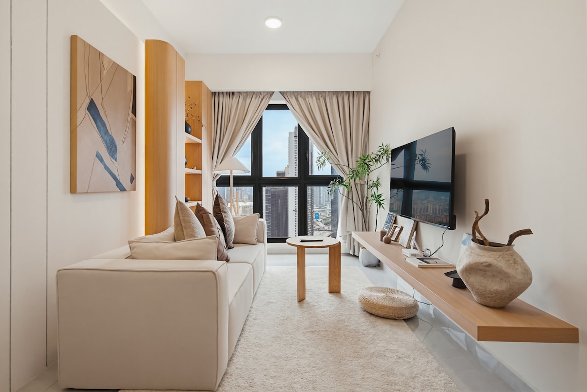 Axon is a luxury residence located at city centre Bukit Bintang. 1) Walking distance to Pavilion 200m, Times Square 500m, Tun Razak Exchange (TRX) 400m, KLCC and KL Tower 2km 2) 24-hours security cameras in all public areas, lift, and lobby. 3) This accommodation is ideally suited for 4 adults or 2 adults and 2 children. 4) Perfect for couples, small families, single adventures or business travellers. 5) The residence is designed to offer a comfortable home experience for short-term stays.