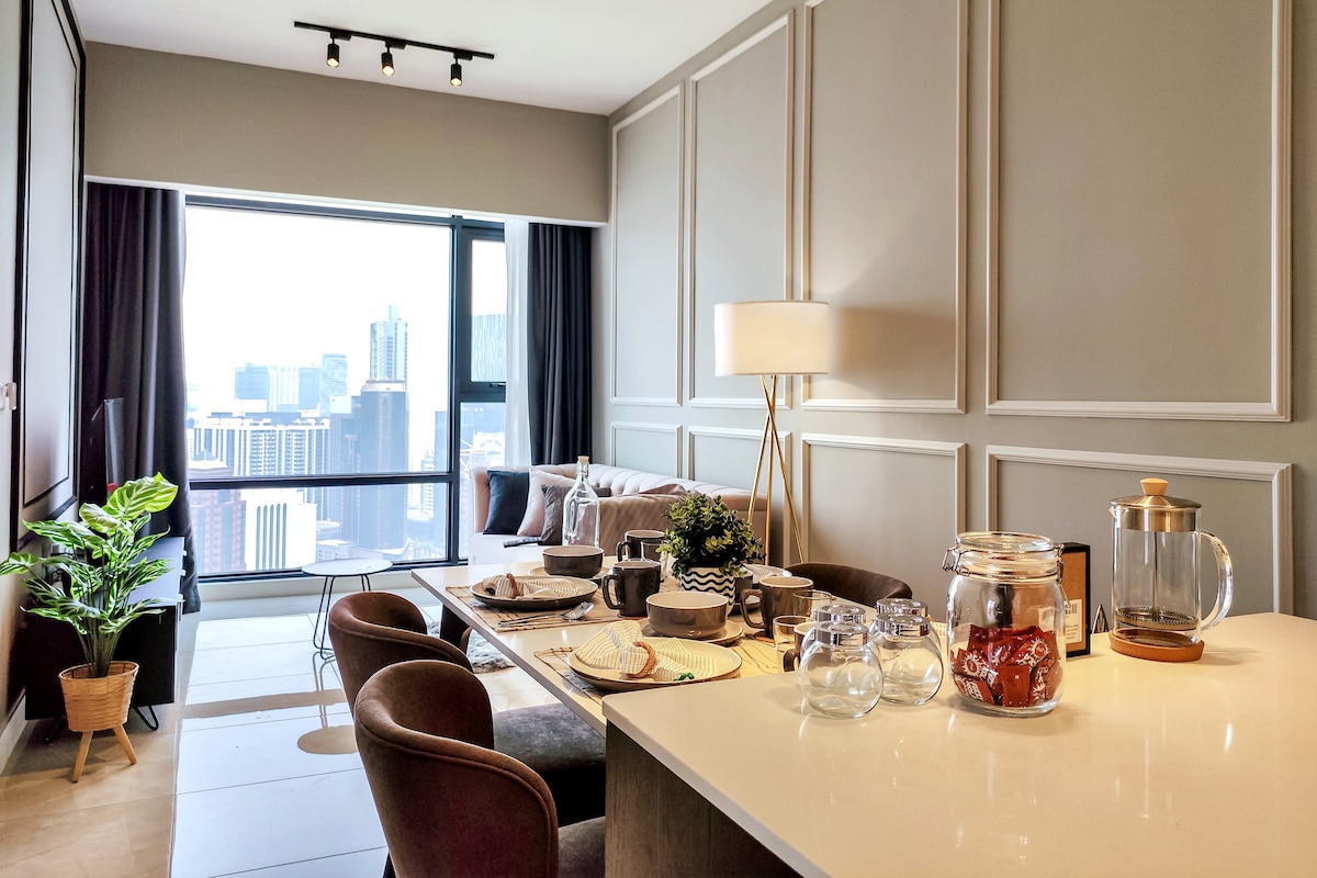 Why stay at Contemporary Suite at Lucentia Residence - the best views of KL - beautifully decorated with a fun spirit - centrally located - near public trans - fast wifi - 2 TVs with Netflix, Apple TV, Prime Video - 2 gorgeous pools - family friendly with baby crib & high chair - gym, pool table,BBQ pits, piano - garage parking - sleeps 3 max 5 - LalaPort Shopping Mall & the WOW entertainment street are attached - grocery, drug store, and many restaurants are attached - movie theatre GSC